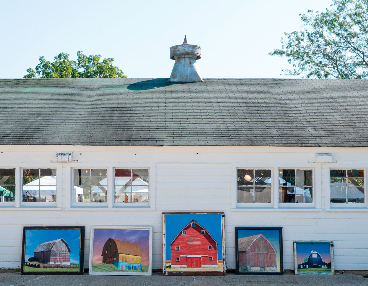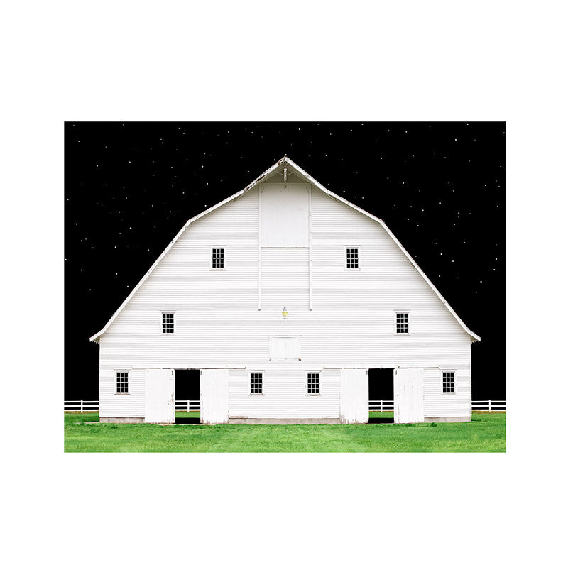 A star-filled sky and anchoring picket fence accent the anniversary edition of the big white barn